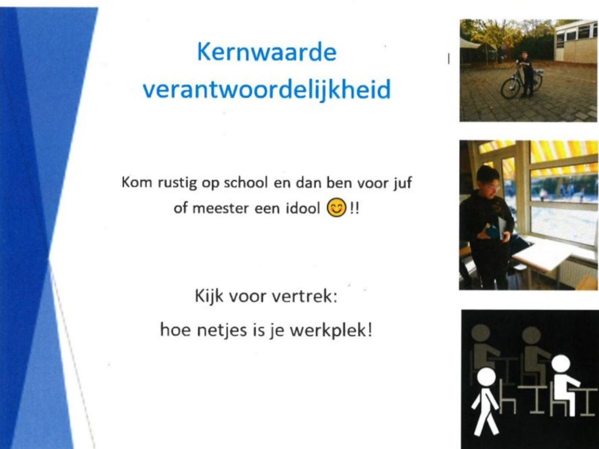 Vervolgens benoemt het schoolteam het gedrag dat past bij deze waarden en leert het de kinderen actief aan. Adequaat gedrag wordt hierna systematisch positief bekrachtigd. Hiermee wordt een veilig en positief schoolklimaat gecreëerd, waarin elke leerling optimaal kan profiteren van het geboden onderwijs.