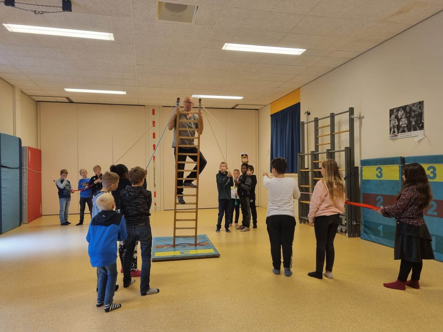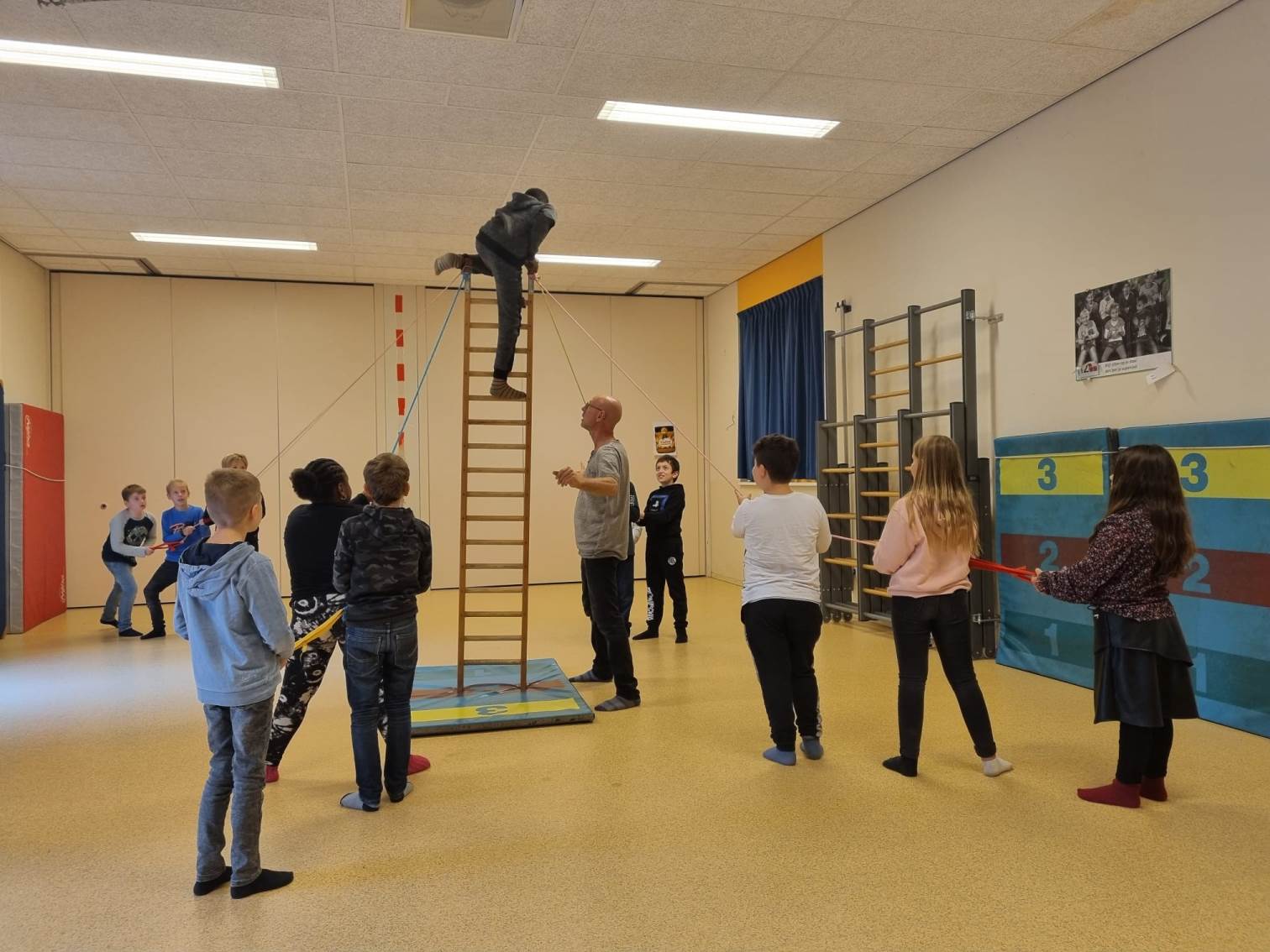 Alle groepen 1 t/m 6 krijgen jaarlijks van de vakleerkracht gymnastiek ‘Rots en water’ training.